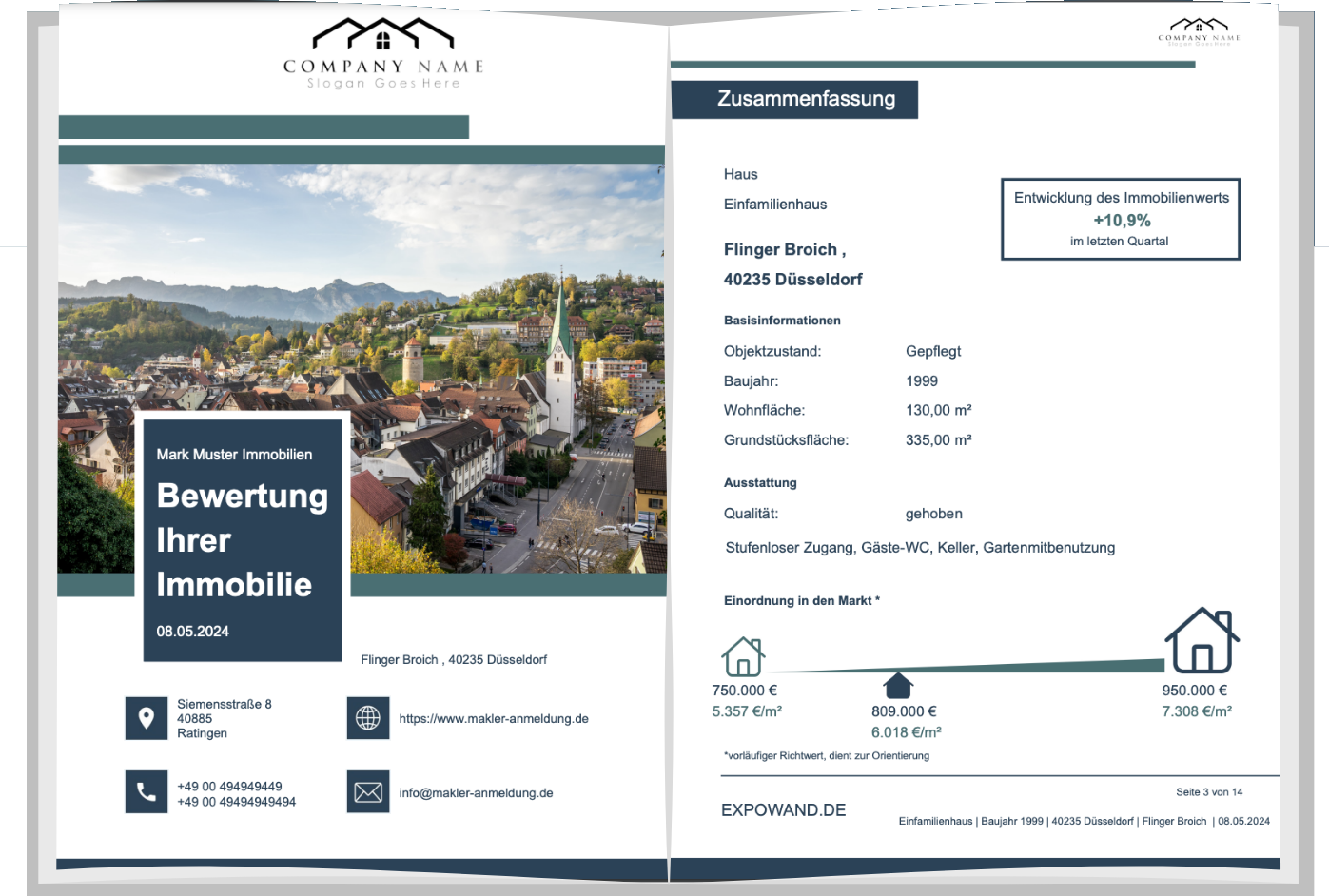 Einfache Antragstrecke mit anschließender Ausgabe eines ungefähren Richtwerts für die Immobilie- als HTML, PDF und als Leadgenerator für Ihre Website.